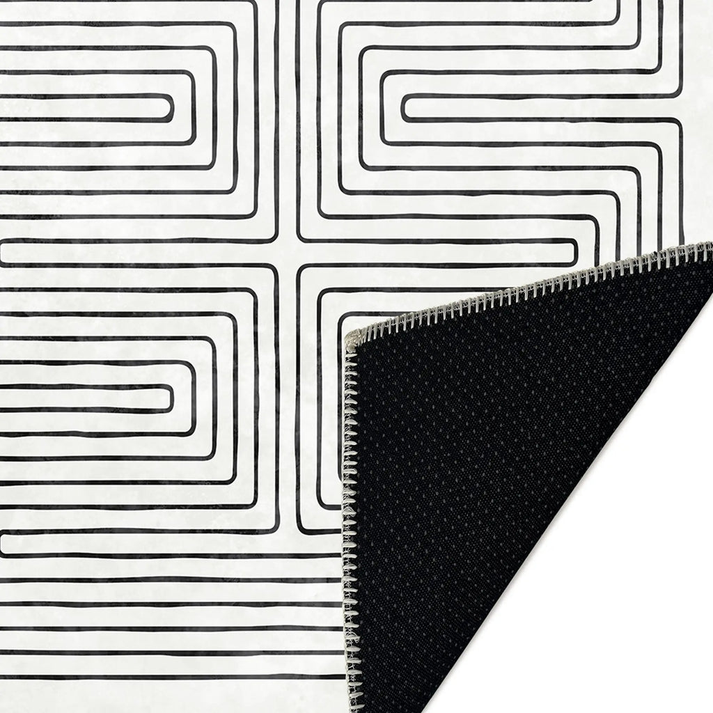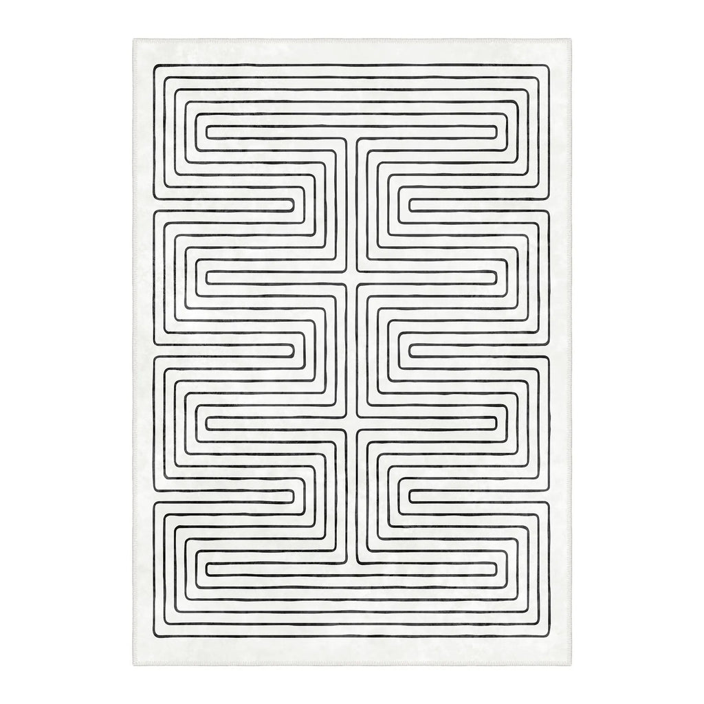 Designed in a crisp white and black pattern, this rug complements any décor style, from minimalist to boho to contemporary.