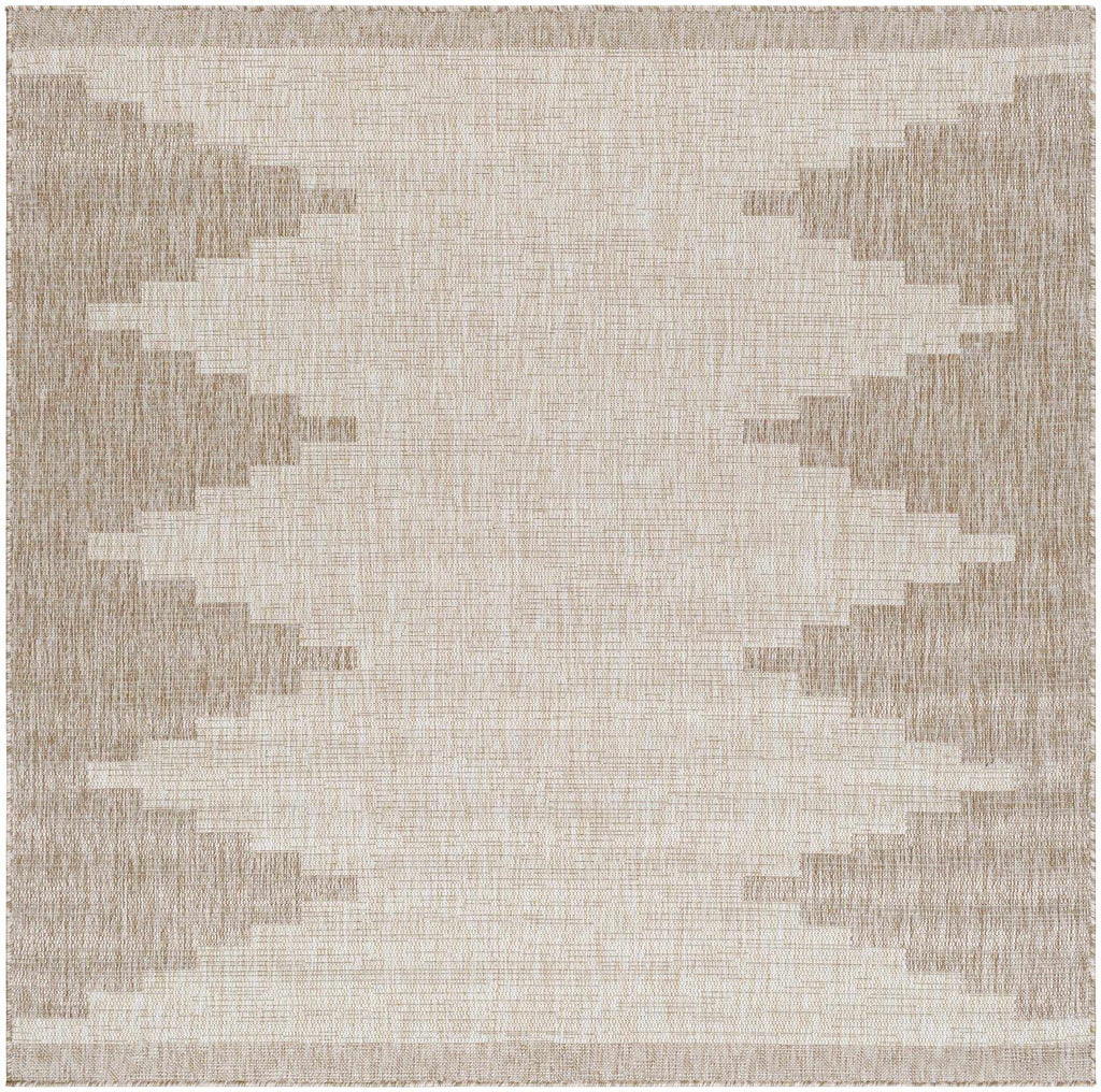 Transform your patio, deck, or indoor space with the Djugun Beige Indoor & Outdoor Rug from Hauteloom’s Deneysville Collection. This versatile rug showcases a striking Aztec-inspired geometric pattern in neutral beige, brown, and cream tones, adding a touch of cultural charm to any setting.