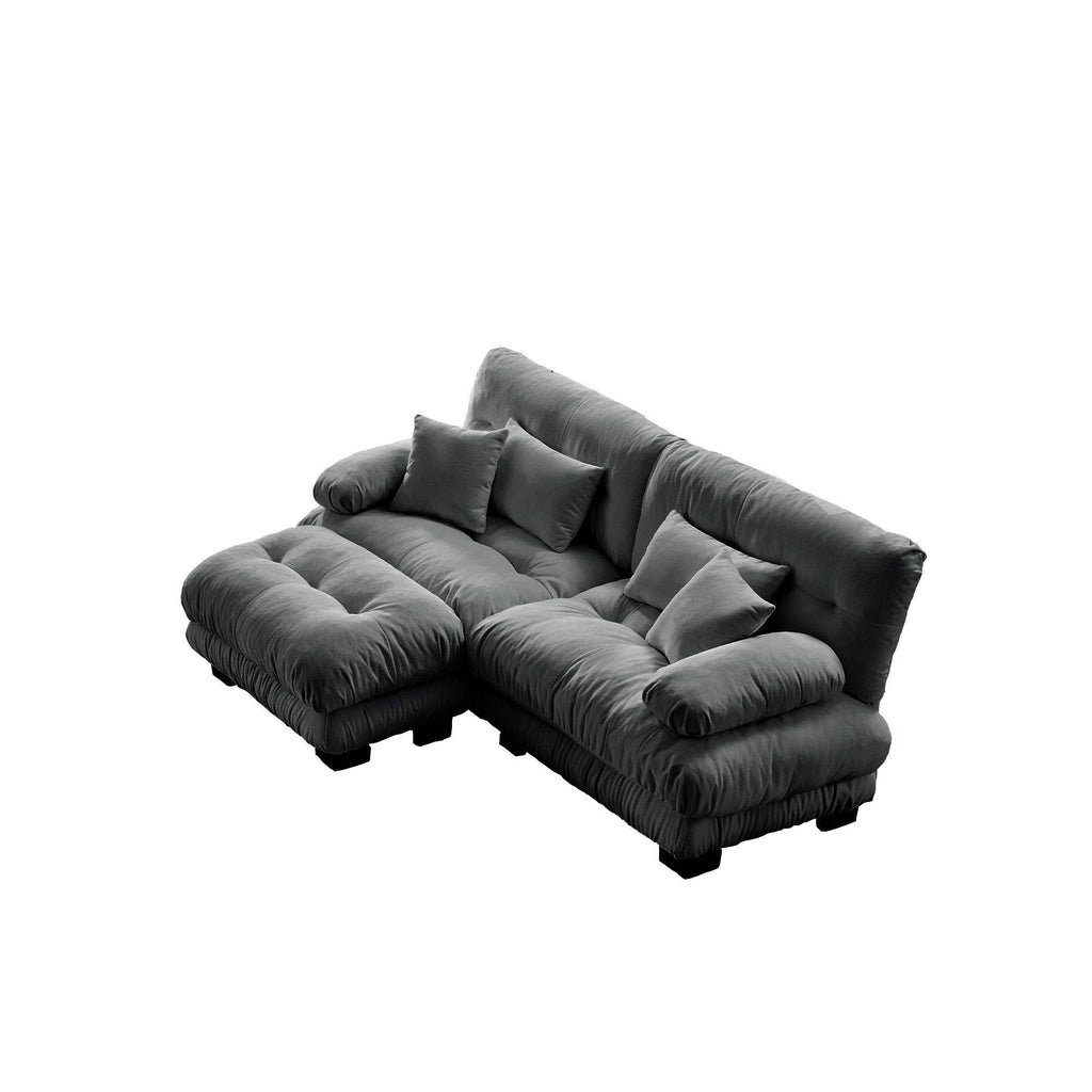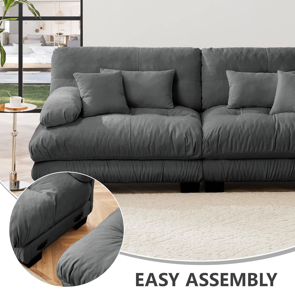 Sink into cozy fall comfort with this gray chenille cloud sectional sofa. Upholstered in soft, plush chenille fabric, the 2-seater design comes with 2 lumbar pillows and 2 throw pillows for extra warmth. It features wide arms and a convertible ottoman, blending style with functionality. The sturdy wooden frame ensures durability, making it the perfect spot for relaxing evenings in the living room amid autumn’s chill. Key Features: ✔ Plush chenille upholstery: ultra-soft and warm for cozy lounging ✔ 2-seater with extras: includes 2 lumbar pillows and 2 throw pillows ✔ Convertible ottoman: adds versatility for seating or footrest ✔ Wide arms: enhance comfort and modern cloud-like aesthetic ✔ Sturdy wooden frame: durable support for long-term use Perfect for: • Living rooms needing a cozy, inviting seating centerpiece • Relaxing fall afternoons or evenings with family or alone • Adding soft, warm texture to spaces with modern or casual decor