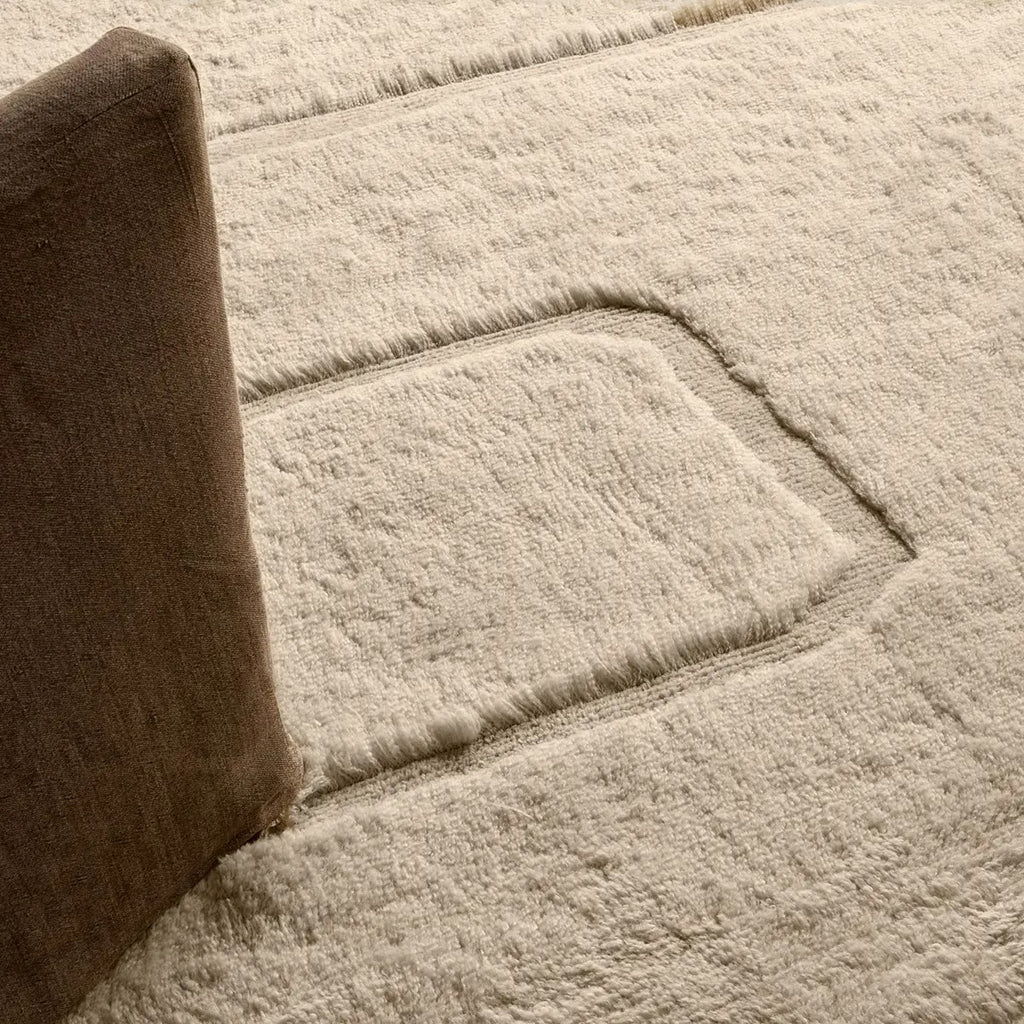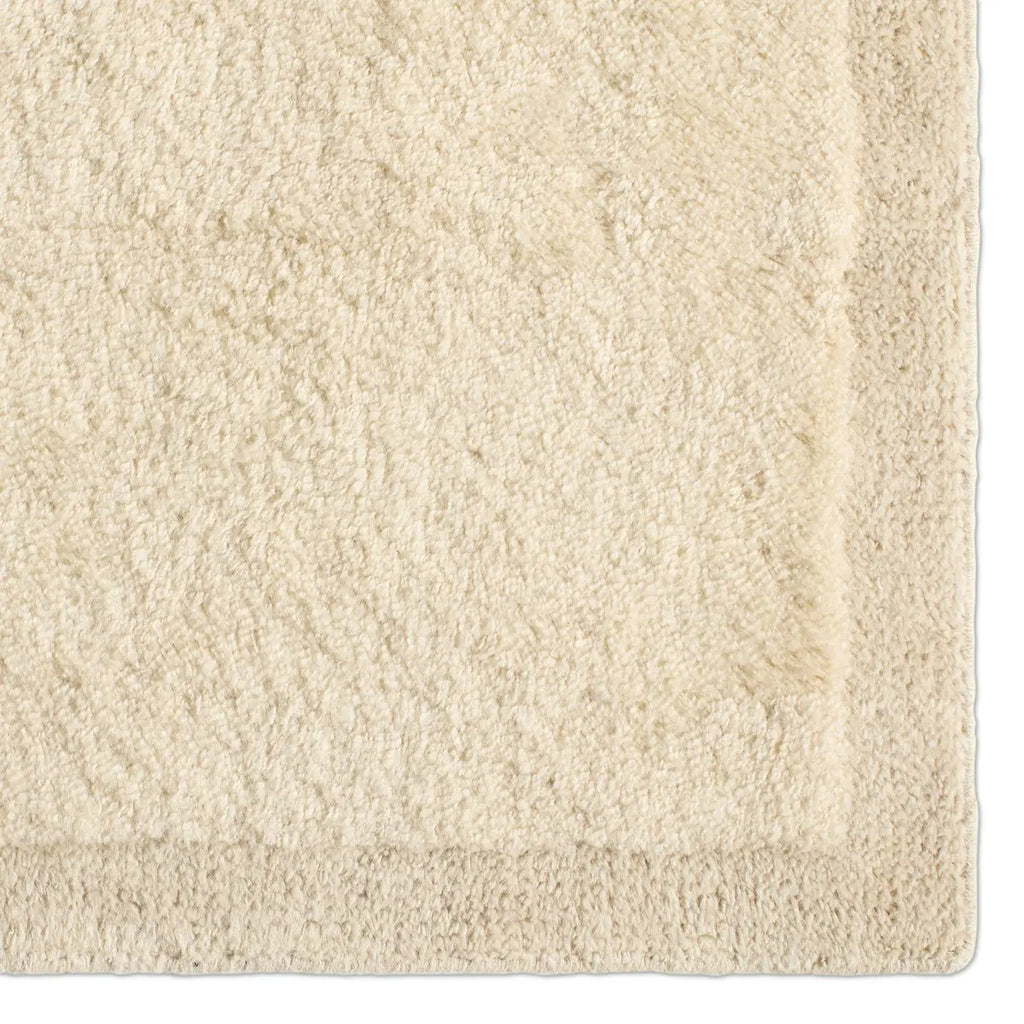 Crafted in India from 100% wool, the Sarra rug features a plush 1.25" thickness, offering exceptional softness and warmth underfoot. Its serene cream tone and sculptural weave bring quiet sophistication to any interior, grounding gathering spaces with organic beauty and modern comfort.